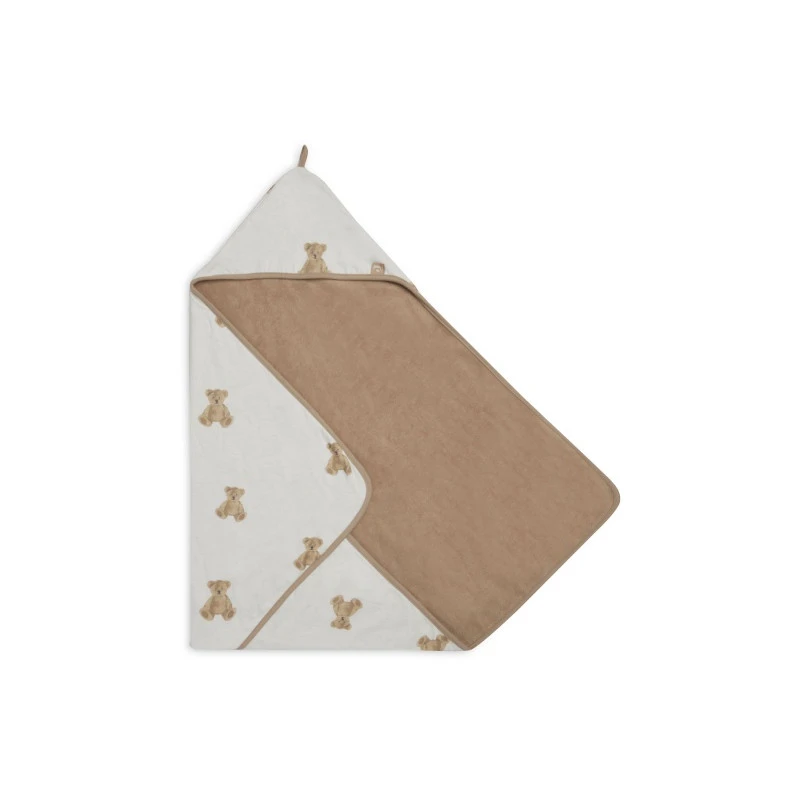 La sortie de bain Jollein est réalisée en coton jersey avec une doublure en tissu éponge. A la fois douce et absorbante, elle est décorée de mignons petits oursons sur fond ivoire. Petit plus : elle dispose d’une boucle tissu au-dessus de la capuche pour l’accrocher au porte-manteau. Facile à entretenir, il est néanmoins préférable d’éviter le repassage. En effet, le tissu non repassé absorbe plus et mieux l’humidité !