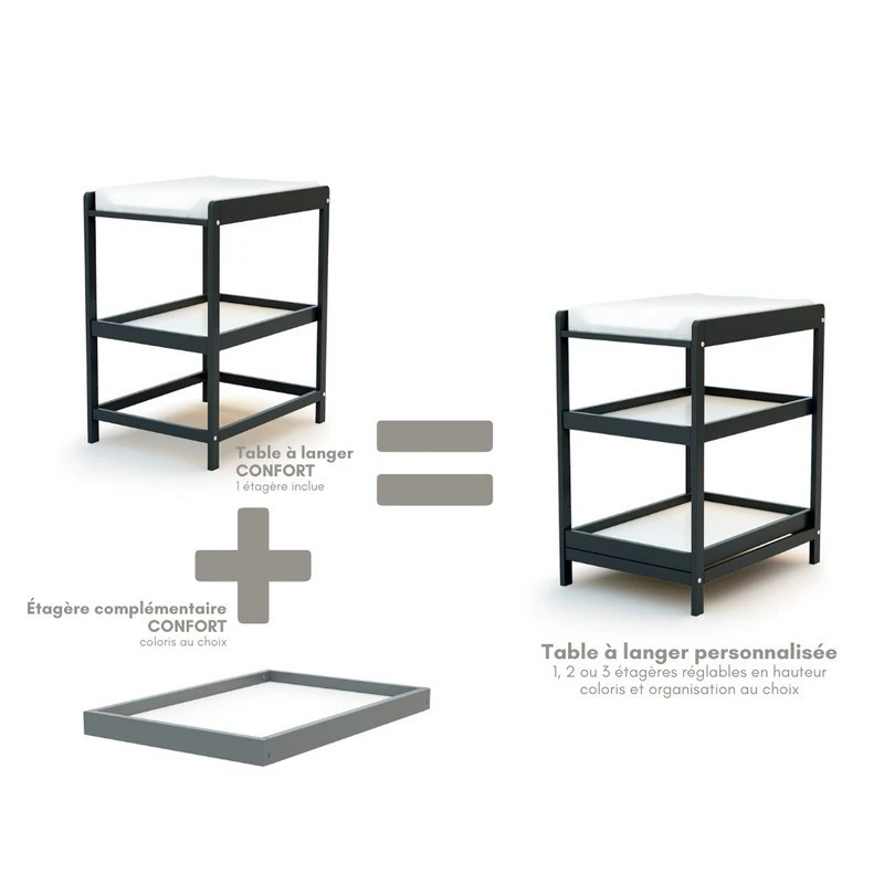 Cette table à langer Confort At4 est équipée d’une étagère pour garder à portée de main tout ce dont vous pourriez avoir besoin tel que les produits de soin, les sorties de bain, les housses de matelas à langer ou les couches. De plus, elle peut être complétée avec 1 ou 2 étagères complémentaires si vous avez besoin de plus de rangements !