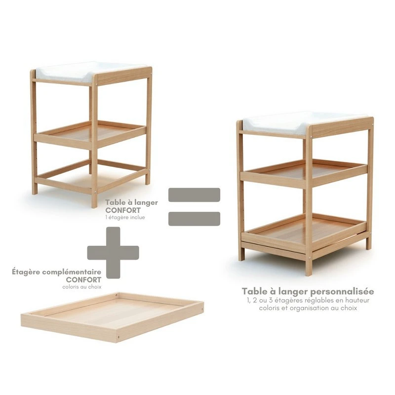 Cette table à langer Confort At4 est équipée d’une étagère pour garder à portée de main tout ce dont vous pourriez avoir besoin tel que les produits de soin, les sorties de bain, les housses de matelas à langer ou les couches. De plus, elle peut être complétée avec 1 ou 2 étagères complémentaires si vous avez besoin de plus de rangements !